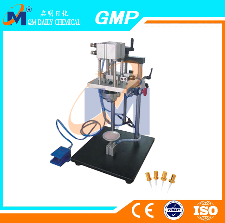 Perfume crimping machine, glass bottles of perfume capping machine or perfume capping machine, it is a kind of special rolling for the perfume bottle cap and the design of capping machine. It is generally provide according to the customer's perfume bottles and bayonet nozzle cap and customized for different size lock cover device. Perfume capping machine for clamping sealing machine, so is suitable for spray bottle, the cap fastening chuck close, to the mouth of the flange. The machine consists of body, table, a clamping device and pneumatic control system.
